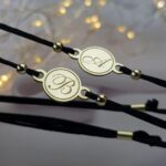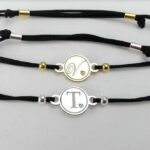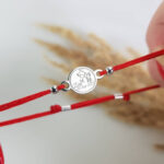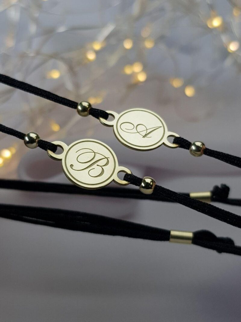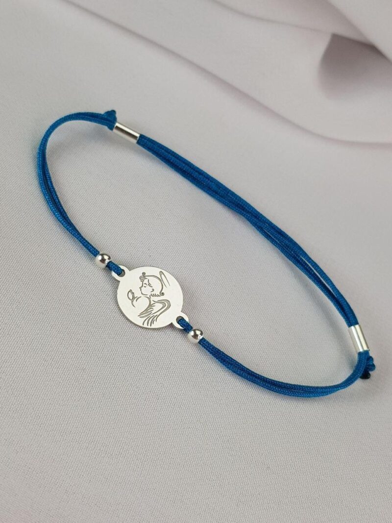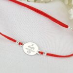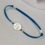 Браслет на шелковой ниточке с серебряной фигуркой круглой формы + гравировка