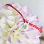 Срібний браслет на шовковій ниточці. Гравіювання: метрики, імена, дати, побажання, слова підтримки — виконаймо будь-яке Ваше замовлення.