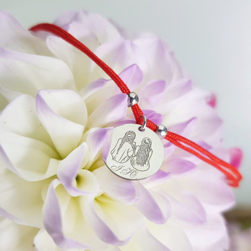 Серебряный браслет на шелковой ниточке, мама-браслет с фигурками деток + гравировкаБраслет красная нить