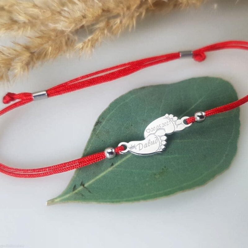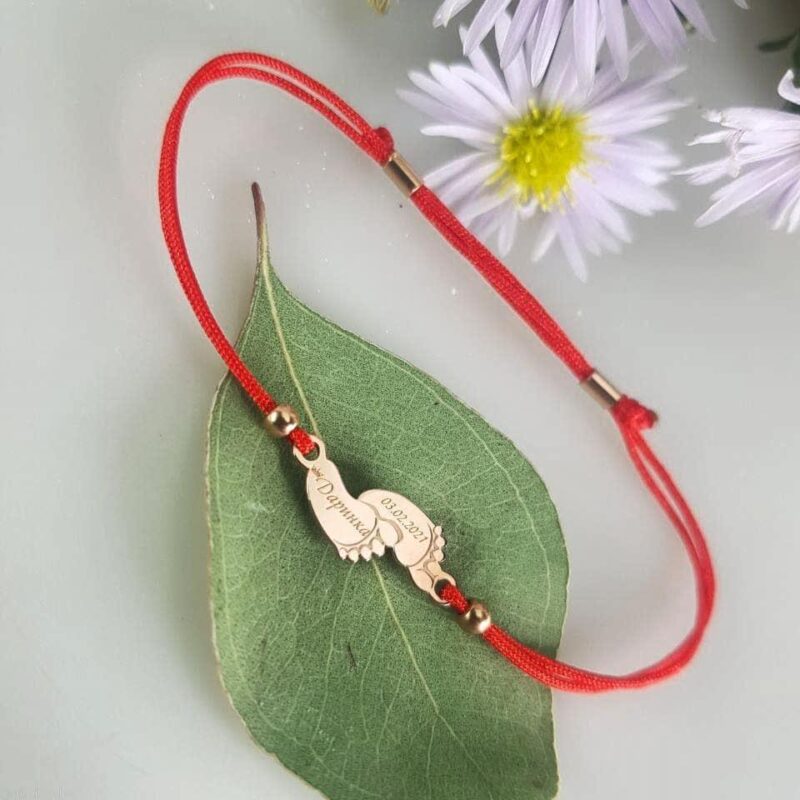 Браслет красная нить, серебро с индивидуальной гравировкой