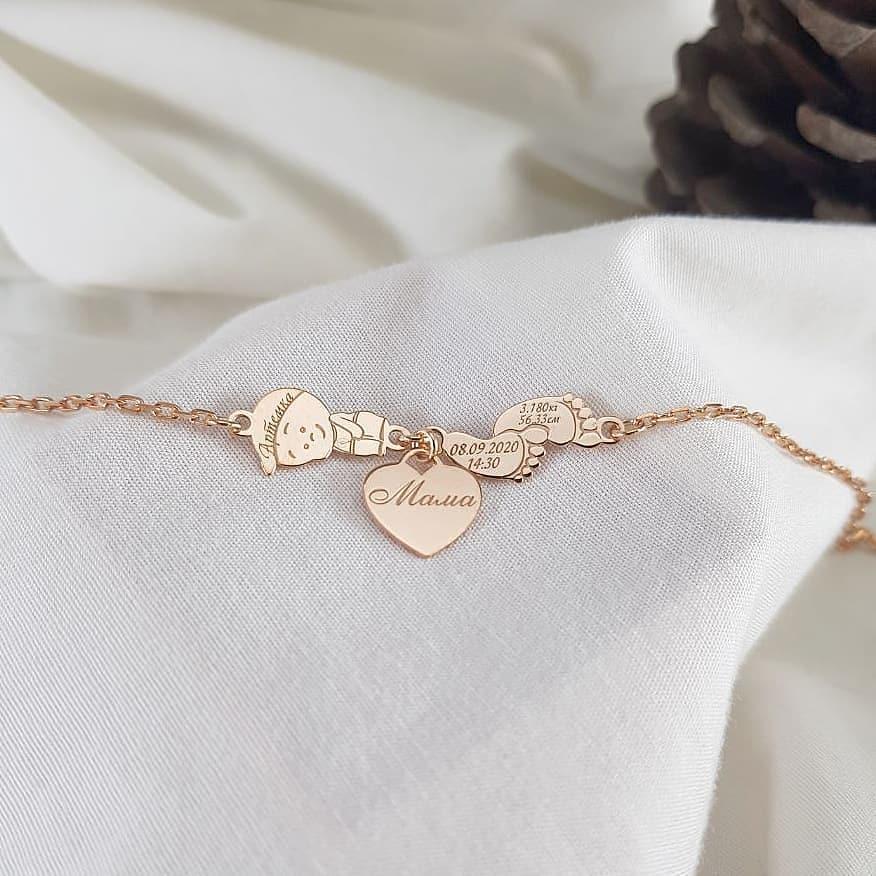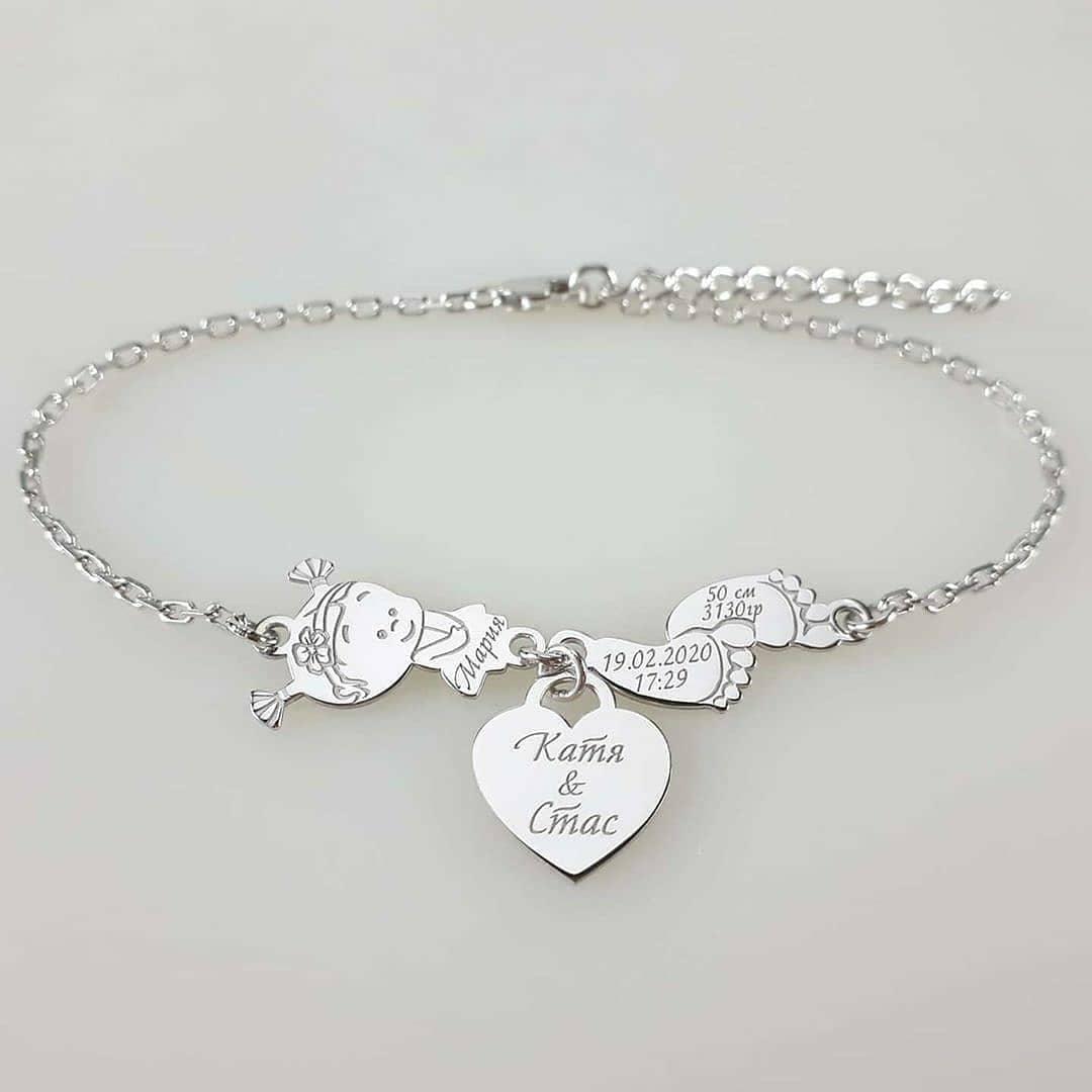 Срібний браслет гравіюванням (метрики, імена, дати, побажання).
