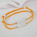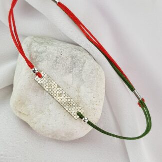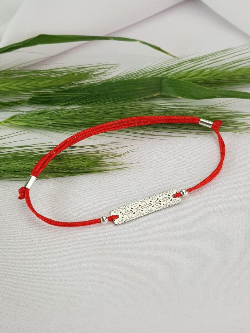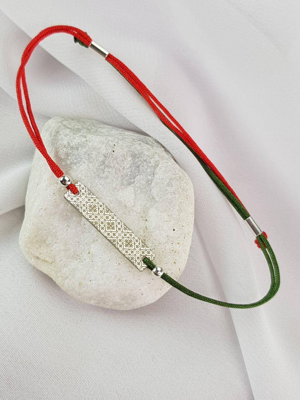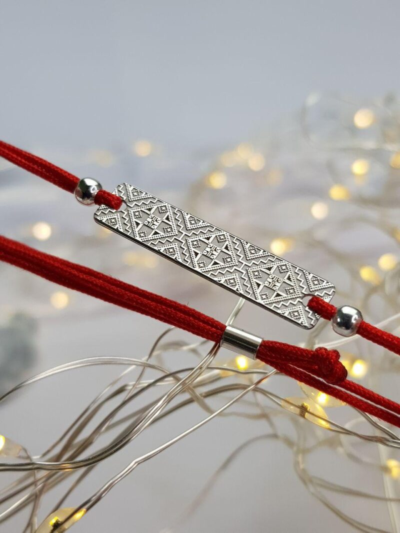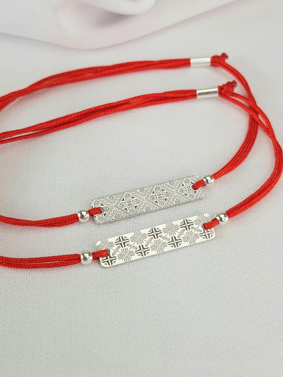 Срібний браслет на шовковій ниточці. Гравіювання: метрики, імена, дати, побажання, слова підтримки — виконаймо будь-яке Ваше замовлення.