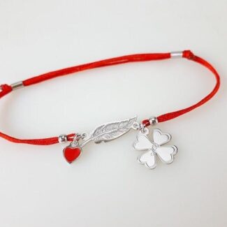 Браслет на шелковой нитке с серебряной фигуркой ангела + гравировка Браслет красная нить