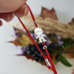 Срібний браслет на шовковій ниточці. Гравіювання: метрики, імена, дати, побажання, слова підтримки — виконаймо будь-яке Ваше замовлення.