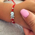 Серебряный браслет на шелковой ниточке, фигурка стопы малыша с гравировкойБраслет красная нить