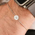 Срібний браслет на шовковій ниточці. Гравіювання: метрики, імена, дати, побажання, слова підтримки — виконаймо будь-яке Ваше замовлення.
