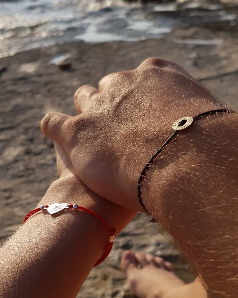 Браслеты на шелковой ниточке с фигуркой сердечко из серебра 925 пробы с гравировкой имени, дат, пожеланий
