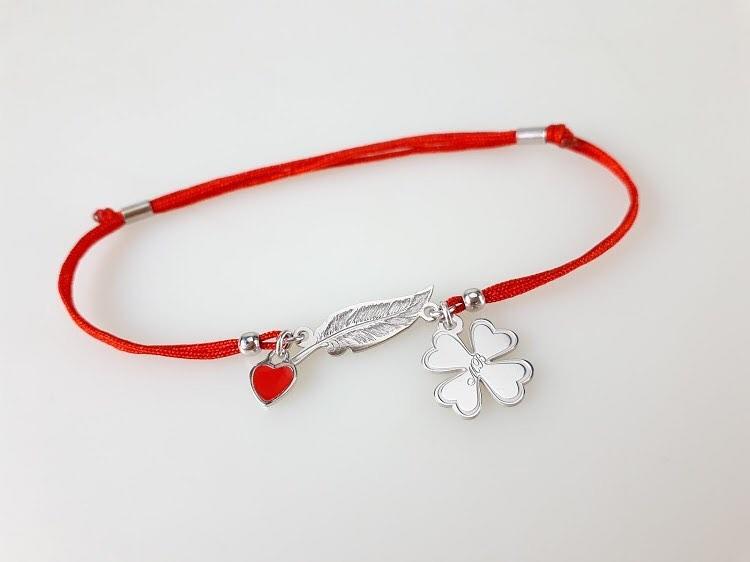 Браслет на нитці пір’їнка та конюшина