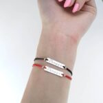 Браслет красная нить, серебро с индивидуальной гравировкой