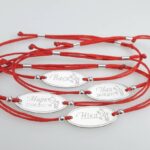 Браслет красная нить, серебро с индивидуальной гравировкой
