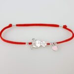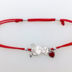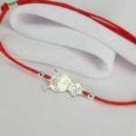 Серебряный мама-браслет на шелковой ниточке с фигурками детокБраслет красная нить